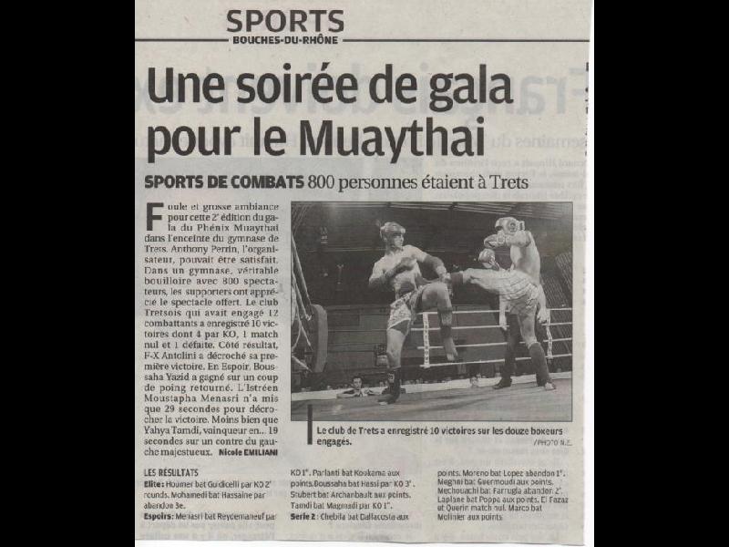Cet article relate les résultats du Gala du Phenix MuayThai qui s'est déroulé 3 Jours plus tôt à Trets.