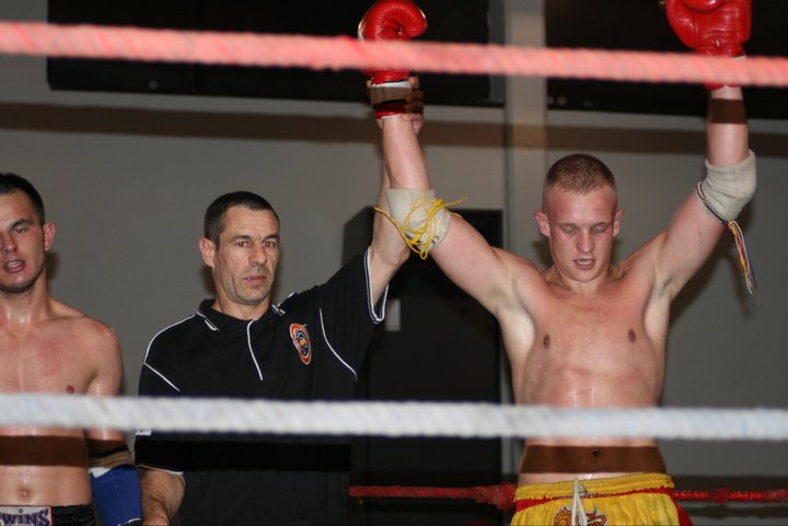 deuxio: CHRIS kan a lui a gagné son combat assez rapidement (a peu pres 20 secondes) par arret sur blessure. le combat commence trankil les naks muay se jaugent CHRIS envoie un low kick bloqué par son adversaire un corp a corp s'engage chris place un coup de genoux au corp son adversaire le lui rend , chris prend l'avantage dans la garde mais son adversaire se colle a lui pour l'immobiliser chris lui place alors une serie de 3/4 coups de genoux dans la cuisse gauche ki provoqueront la blessure le combat en restera la. bravo a CHRIS pour ce retour victorieux sur les rings. nous souhaitont bien sur un rapide retablissement a son adversaire, car une revanche fera suite a ce combat.